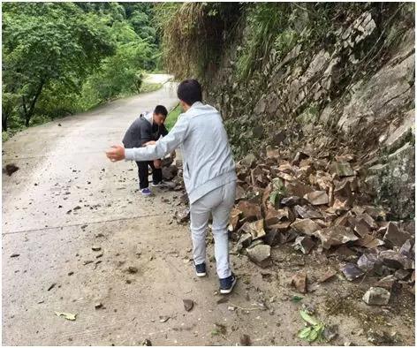 在進(jìn)行測(cè)區(qū)控制控制點(diǎn)采集的路途中,由于近期陰雨連綿,導(dǎo)致前方山體滑坡,落石擋住了前行的道路,由于沒有工具,只能下車徒手對(duì)路面的滑坡堆積物和垮塌的碎石進(jìn)行清理。經(jīng)過一個(gè)多小時(shí)的奮戰(zhàn),道路才恢復(fù)暢通。