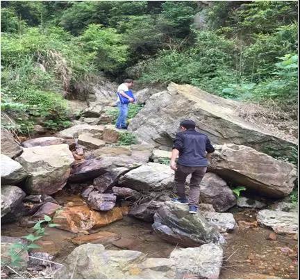 做像控的第二天,我們又遇到了一個(gè)難題,有一個(gè)落在山上的像控點(diǎn),需淌過河道、翻越一座大山才能到達(dá)目的地。為了保證順利完成工作,組長決定進(jìn)山刺點(diǎn)。剛進(jìn)山的過程中,車沒開多遠(yuǎn),一條河阻擋了我們行進(jìn)的腳步,河水很深,徹底沒路了,大家只能放棄乘車,慢慢的趟過去,然后繼續(xù)前行,山路上荊棘叢生,一不小心就會(huì)被劃傷。